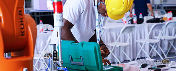 “機器人應用大賽”始終堅持立德樹人、德技并修,競賽方向面向?qū)嵺`與強化能力,競賽內(nèi)容緊貼工業(yè)、農(nóng)業(yè)、醫(yī)療等行業(yè)